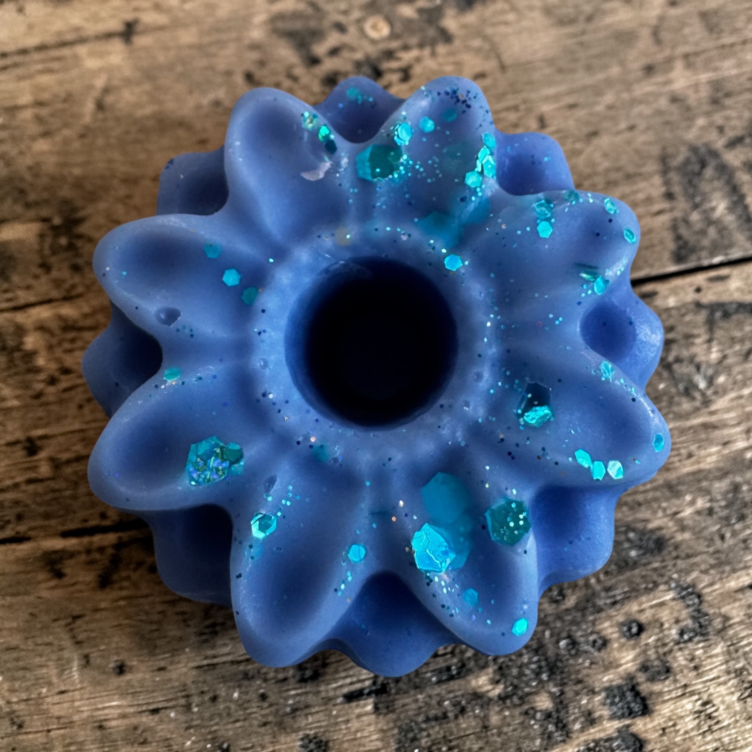 Cire végétale d'olive , Parfum français de Grasse , Micas naturel , Peut être agrémenté de paillettes bio et/ou de fleurs séchées