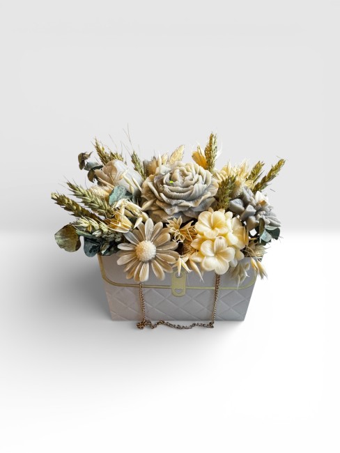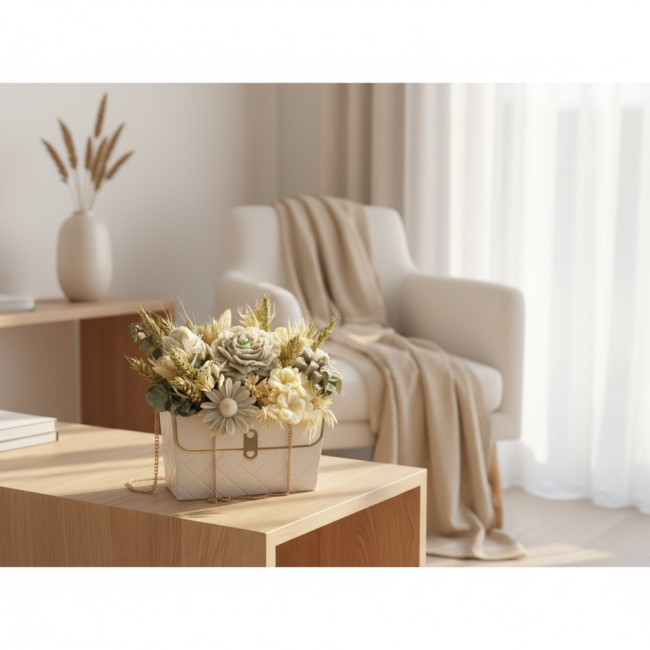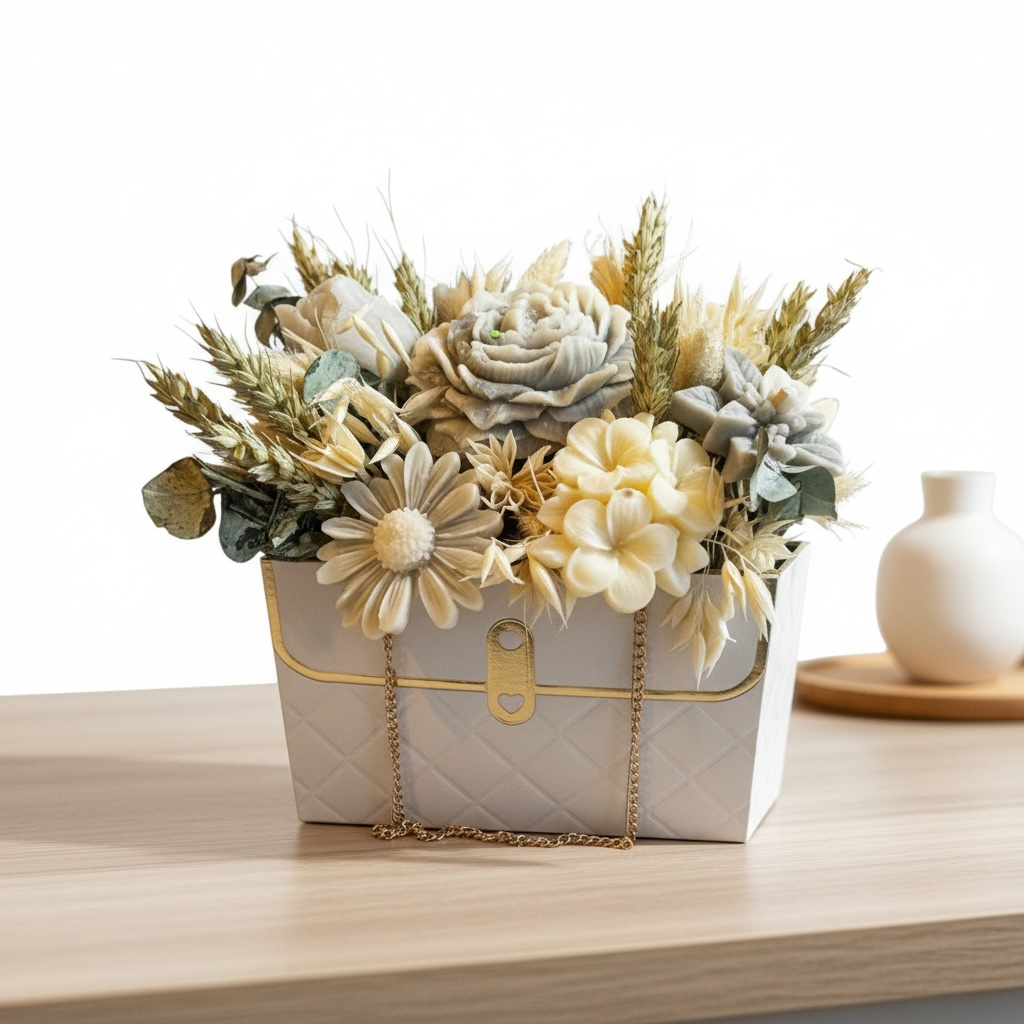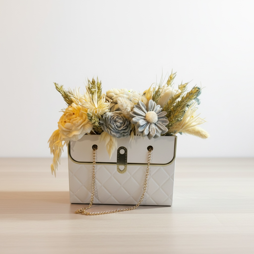 Bouquet Parfumé " Senteur Fleur de coton " – Édition Sac à Main Blanc