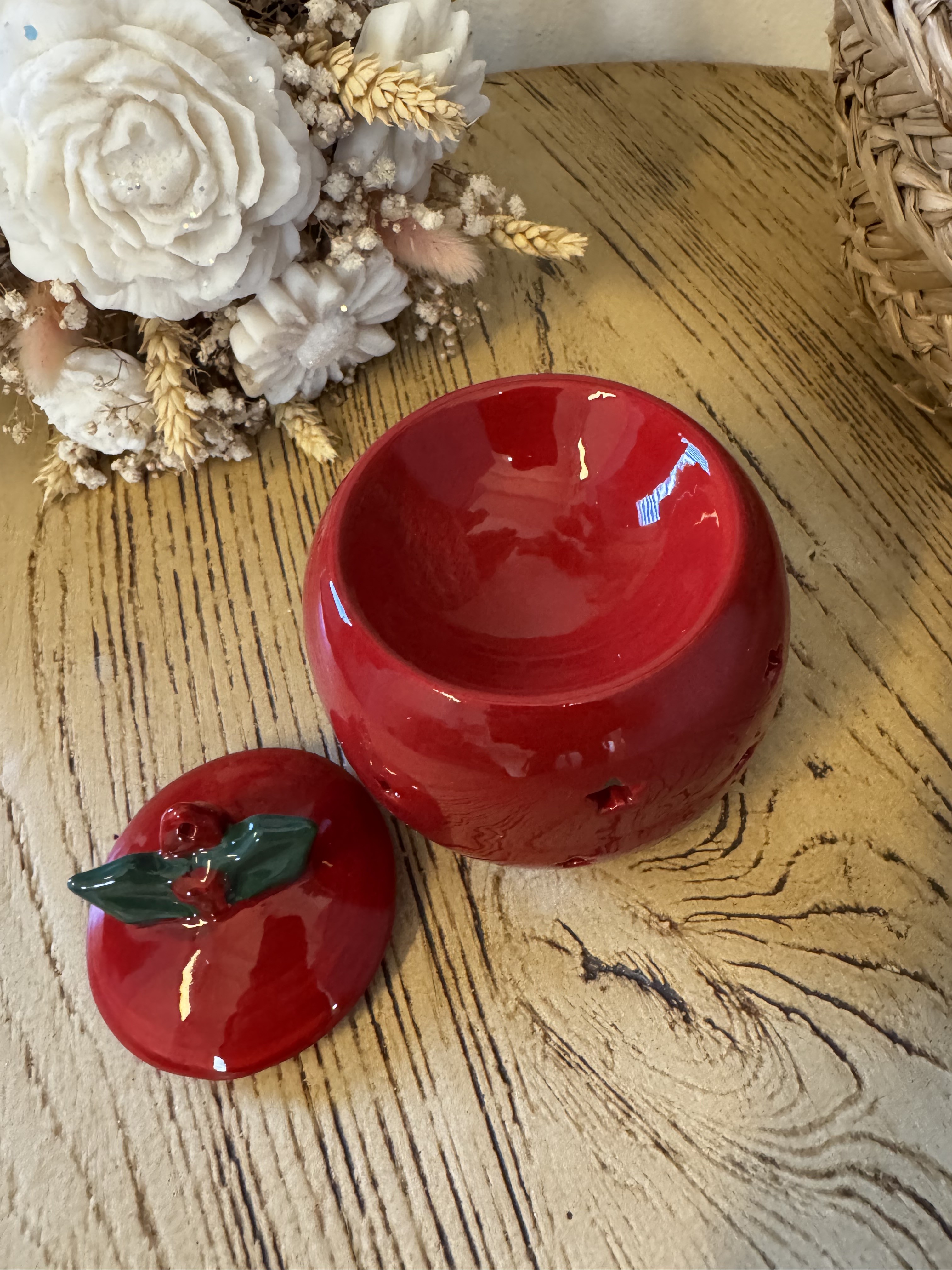 🎄 Brûleur à fondants parfumés – Boule de Noël rouge