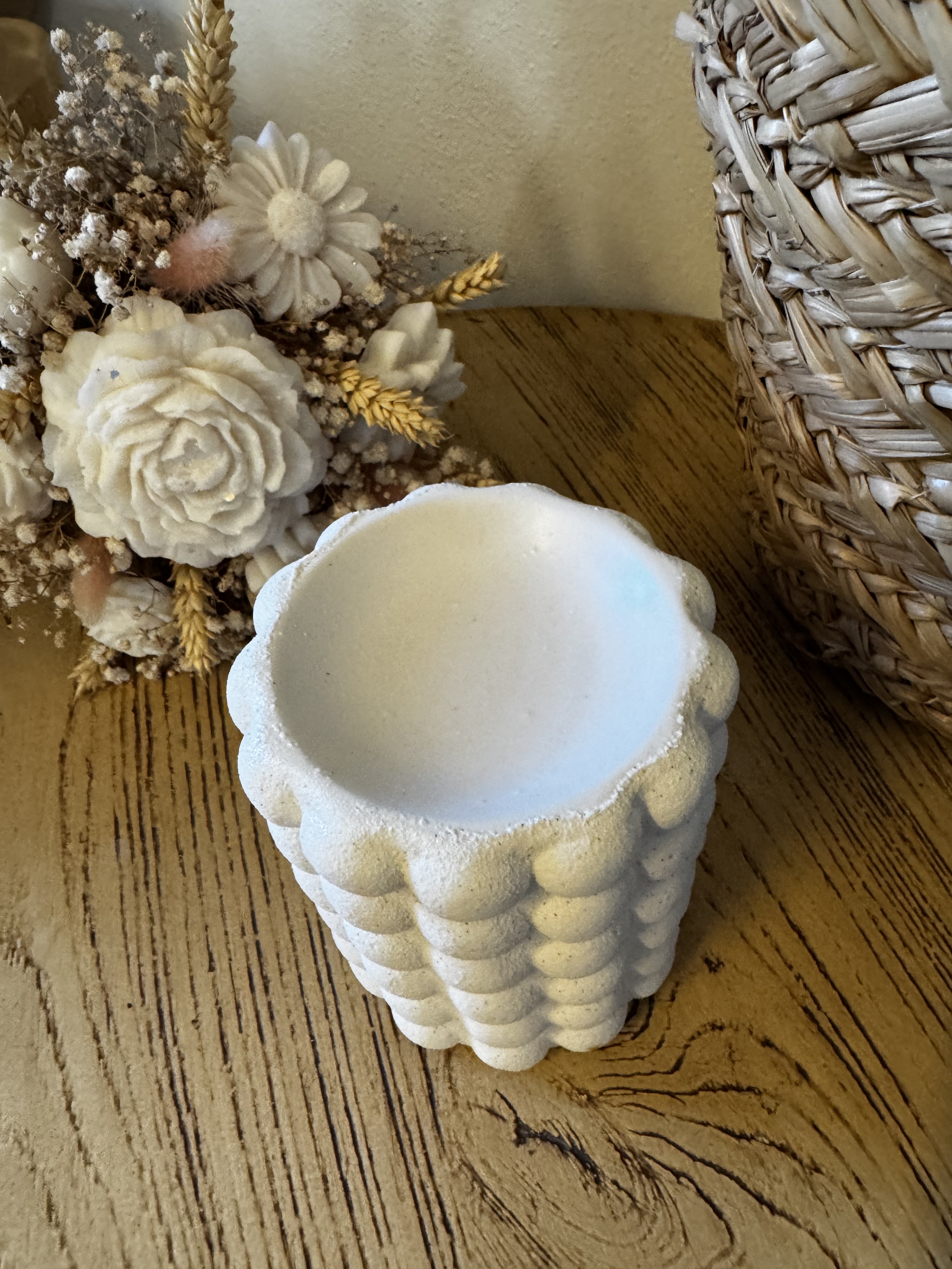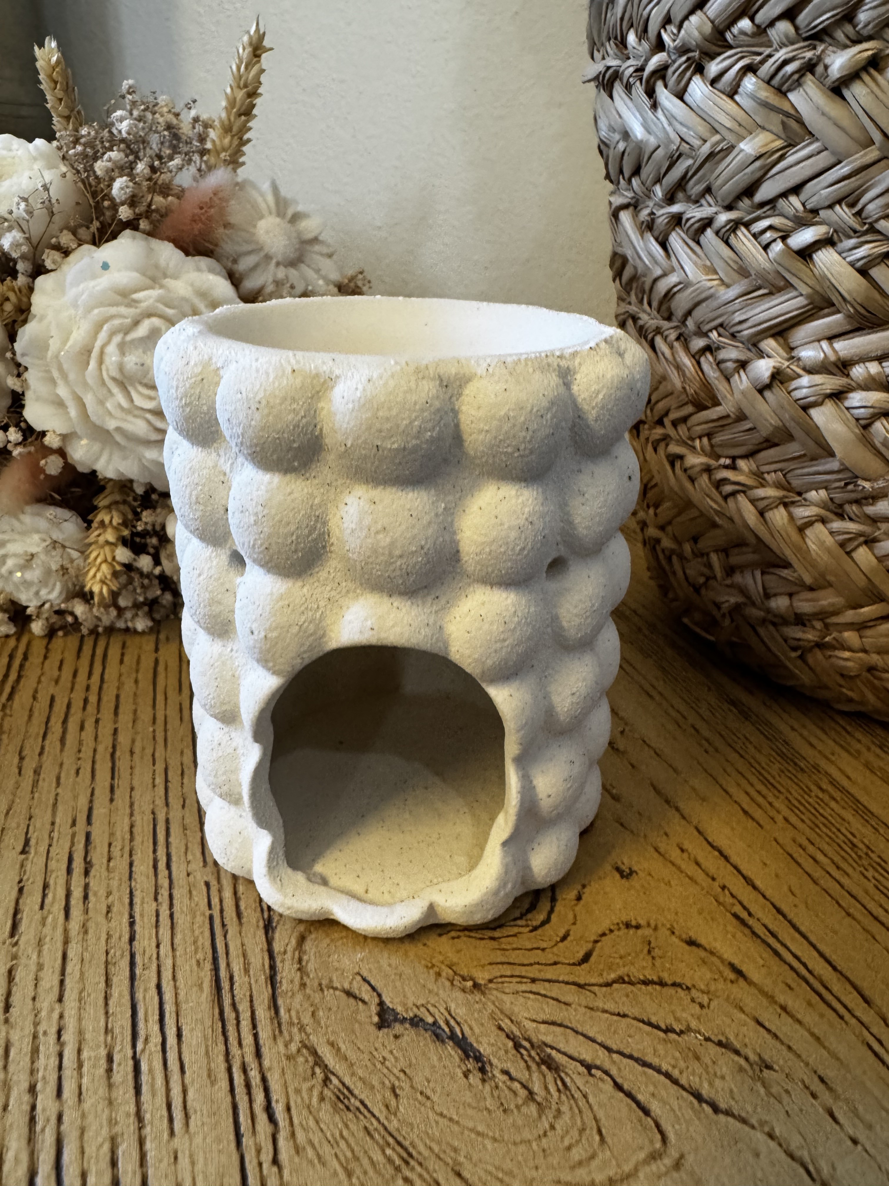 Apportez une touche moderne et tendance à votre intérieur avec ce brûleur à fondants inspiré du célèbre style “bubble”. Sa texture en relief et sa finition mouchetée lui donnent un aspect unique qui se marie parfaitement avec les décos minimalistes et contemporaines.