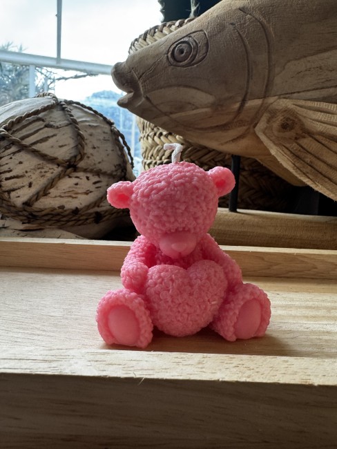 - 🧸 Bougie en forme de nounours tenant un cœur , 115 grammes