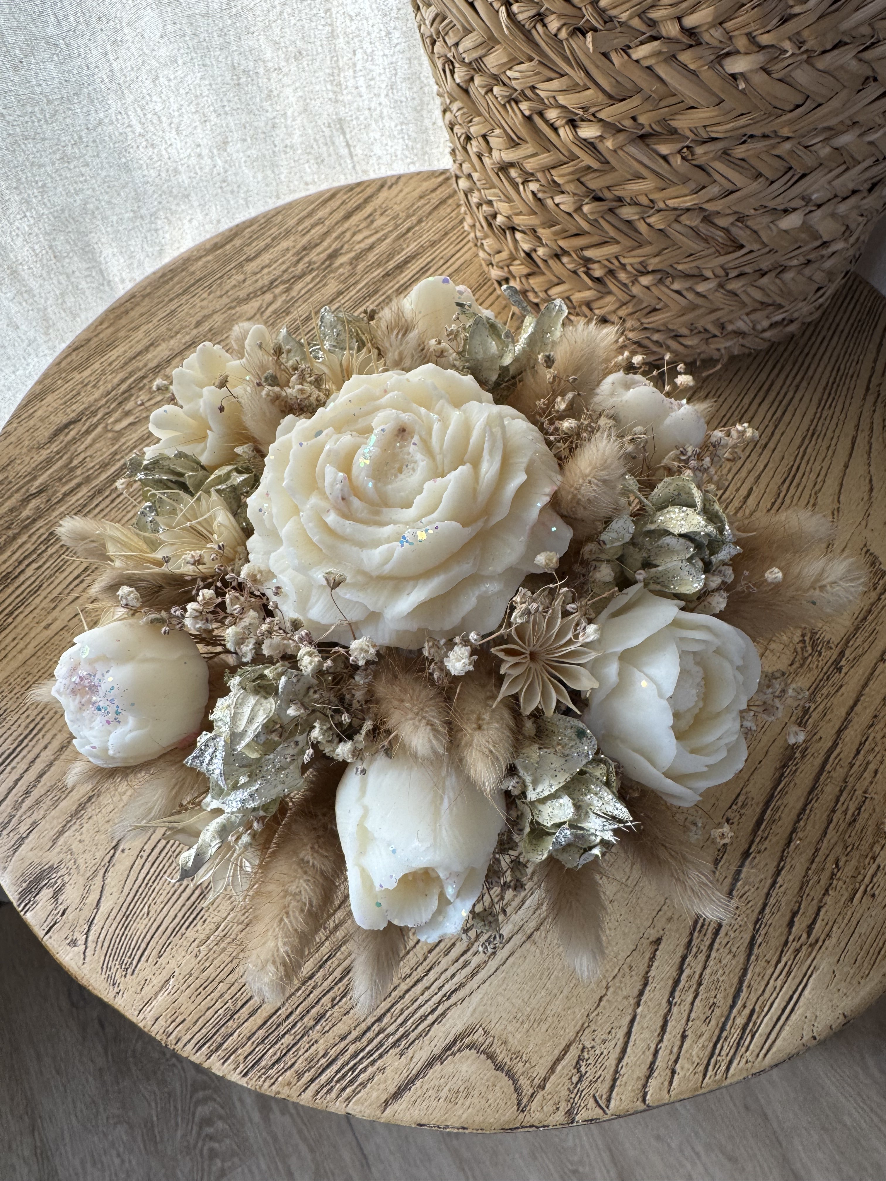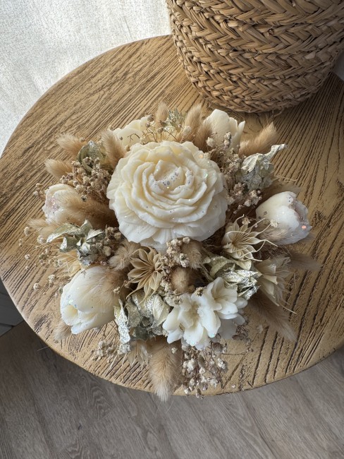 Une fois le bouquet admiré, vous pouvez faire fondre les fleurs en cire dans un brûle-parfum afin de continuer à profiter pleinement de la senteur.
