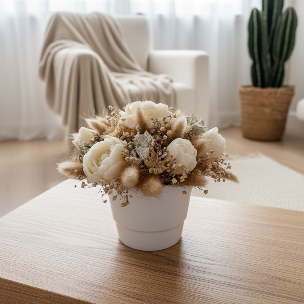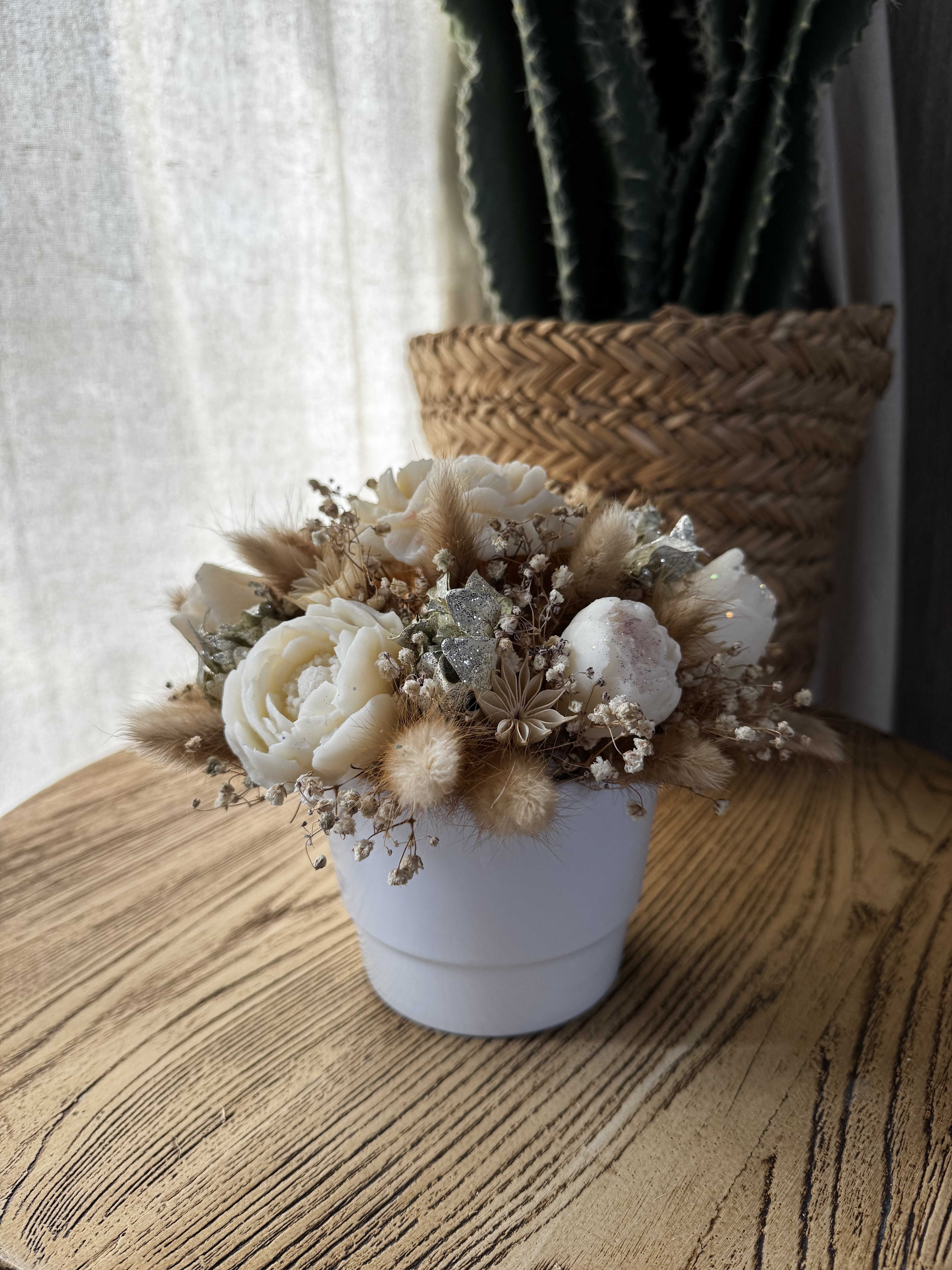 Bouquet Parfumé "Senteur Love " et cache pot en céramique blanc